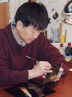 I came to meet the Japanese lacquer in Kanazawa 20 years ago, and since then tackled with the art, especially with the golden Japanese lacquer-URUSI work, and searched for a form in which I can express myself the most. In effect I have sought an approach to express the golden Japanese lacquer-URUSI work, a traditional art in the Japanese lacquer craftsmanship, by presenting it in a level perspective. By doing so, not as a boxed receptacle or a vessel, I have wrestled with the art of the golden Japanese lacquer-URUSI work, which enhances tremendous decorative styles and techniques, and have questioned myself with each piece of work what I can do with the art. I hope you enjoy the presence of my works which definitely succeeds the art's tradition at the same time.